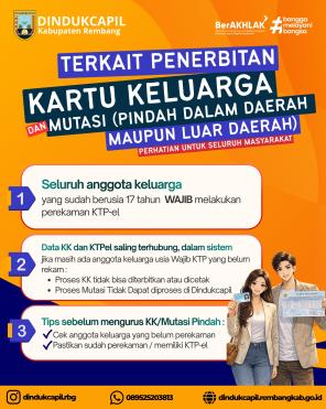 Pastikan data kependudukanmu sudah lengkap ya! Sebelum mengurus Kartu Keluarga atau mutasi pindah, semua anggo...