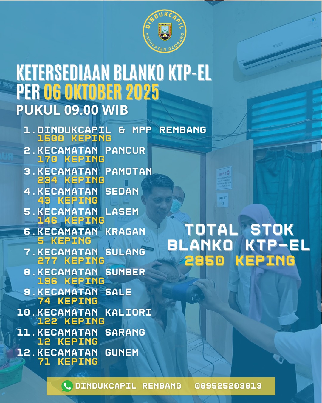 Kepala Dinas Kependudukan dan Pencatatan Sipil Kabupaten Rembang, Drs. Suparmin, MM memimpin Sidang Pencatatan Perkawinan Non Muslim di ruang kerja Kadis Dukcapil, Kamis 30 Maret 2023. Pelaksanaan Sidang Pencatatan Perkawinan Non Muslim ini bertujuan untuk melegalkan status perkawinan secara hukum, untuk dicatat ke dalam register Akta Perkawinan. Selanjutnya Dindukcapil Kab. Rembang menerbitkan kutipan Akta Perkawinannya sebagai bukti adanya perkawinan yang sah secara hukum. Hal ini mengacu kepada Undang-Undang Nomor 24 Tahun 2013 tentang Perubahan Undang-Undang Nomor 23 Tahun 2006 tentang Administrasi Kependudukan.